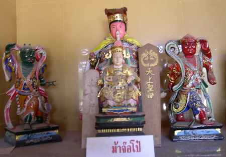 จากประวัติกล่าวว่า มีเทพสององค์พี่น้องสกุลเกา ครั้งเมื่อมีชีวิตอยู่เป็นนายพลทหารสมัยราชวงศ์ซัง ประมาณก่อน พุทธศตวรรษที่ ๒๑ ถึงก่อนพุทธศตวรรษที่๑๖ แต่ได้เสียชีวิตในการสงคราม พี่ชายชื่อ เกาหมิง ( เปา ) คือ นายพลเฉียนหลี่เหยิน เป็นผู้มีดวงตาที่สามารถมองเห็นได้ไกลเป็นพันลี้ คือมีตาทิพย์ ใบหน้าสีเขียว น้องชายชื่อ เกาชุค ( ชุช ) คือ นายพลชุนเฝิงเอ้อ เป็นผู้ได้ยินเสียงลมพัดคือมีหูทิพย์ใบหน้าสีแดง เทพทั้งสององค์เมื่อเห็นโม่เหนียง ต่างก็สมัครรักใคร่อยากได้เป็นคู่ครอง ทั้งสองฝ่ายต่างให้สัญญากันว่า หากโม่เหนียงแพ้จะยอมแต่งงานด้วย หากพี่น้องสกุลเกาแพ้ จะต้องติดตามรับใช้โม่เหนียงตลอดไป ดังนั้นรูปปั้นหรือรูปวาดของโม่เหนียงจะเห็นนายทหารองครักษ์ซ้ายขวา หน้าตาดุยืนอยู่สองข้างและติดตามเธอตลอดไป เมื่อได้นายทหารเอกมาช่วยถึงสององค์เช่นนี้ ทำให้เธอสามารถช่วยเหลือชาวเรือได้กว้างขวางและไกลมากขึ้น