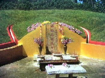 จากตำนานไต้หวันกล่าวว่า ในปี พ.ศ. ๒๑๐๖ซึ่งเขาอายุประมาณ ๒๓ ปี เต้าเฉียนได้นำกองเรือเข้าจอดที่ท่าเรือเมืองต่าโก้ว แล้วนำทรัพย์สินเพชรนิลจินดาที่ปล้นมาได้ใส่เข่งไม้ไผ่จำนวน ๑๘ เข่งครึ่ง นำไปซุกซ่อนไว้รอบเนินเขาแห่งหนึ่ง ตามคำแนะนำของซินแสอู่ป๋าเซียน 吳半仙 ผู้ดูฮวงจุ้ยให้ เขายังแนะนำต่อไปว่า หากหลินเอาศพบิดามาฝังไว้ที่ถ้ำมังกร ซึ่งอยู่ใกล้เมืองเจี่ยลี่ในปัจจุบัน แล้วเอาดอกศรธนูจำนวน ๓ ดอกวางไว้บนแท่นบูชา ให้เขานอนเฝ้าจำนวน ๑๐๐ วัน ขณะที่นอนให้อมเมล็ดข้าวสารจำนวน ๑๐๐ เมล็ดทุกคืน เมื่อถึงคืนสุดท้ายตอนเช้ามืด ให้เอาดอกศรขึ้นสายธนูเล็งไปที่เมืองหลวง คือกรุงปักกิ่งซึ่งอยู่ทางทิศตะวันตกเฉียงเหนือ แล้วยิงไปทั้งสามดอก เขาก็จะปราบศัตรูได้ทั่วทิศและได้เป็นฮ่องเต้ด้วย