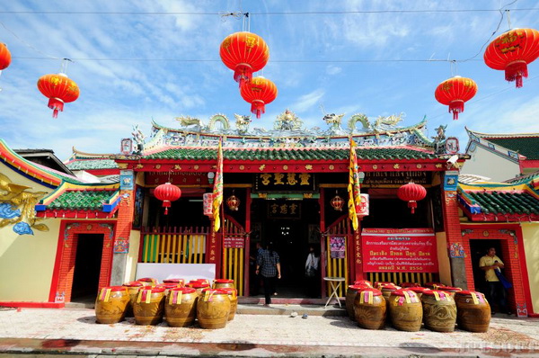 ต่อมา พระจีนคณานุรักษ์ ( ตันจูหลาย ) กรมการพิเศษเมืองปัตตานีซึ่งเป็นหัวหน้าชาวจีนหรือกัปตันจีนในปัตตานี ได้เจ็บป่วยรักษาหมอหลายคนยาหลายขนานก็ไม่หาย เมื่อหมดหนทาง ตนจึงต้องพึ่งพระเฉ่งจุ้ยโจวสู่กง ซึ่งสถิตอยู่ที่ศาลเจ้าหลังเล็กๆชื่อศาลเจ้าซูก๋ง ให้ประทับทรง พระประทับทรงบอกว่าให้ไปขอยาจากเจ้าแม่ลิ้มกอเหนี่ยวมากินก็จะหายจากโรค ตนจึงไปที่ศาลเจ้าแม่ลิ้มกอเหนี่ยวให้คนประทับทรง เจ้าแม่บอกว่า ไม่ขัดข้อง แต่ถ้าหายแล้วจะต้องสร้างศาลเจ้าให้ใหม่ที่เมืองปัตตานี แล้วอัญเชิญรูปพระเฉ่งจุ้ยโจวสู่กงไปประดิษฐาน พร้อมกับรูปแกะสลักของเจ้าแม่ โดยให้ใช้ไม้มะม่วงหิมพานต์ต้นที่เจ้าแม่เคยผูกคอตายมาทำรูปจำลอง พระจีนคณานุรักษ์ก็รับคำ เมื่อได้ขอยามาต้มรับประทานจนหายจากโรค ตนจึงได้ก่อสร้างศาลเจ้าขึ้นใหม่ พร้อมกับนำป้ายศาลเจ้าเก่าคือศาลเจ้าซูก๋ง ซึ่งมีข้อความบอกว่า ศาลเจ้าแห่งนี้สร้างเมื่อปีว่านลี่ที่ ๒ หรือ รัชสมัยฮ่องเต้หมิงเสินจง แห่งราชวงศ์หมิง พ.ศ. ๒๑๑๗ มาไว้ พร้อมกับทำพิธีอัญเชิญเจ้าแม่ลิ้มกอเหนี่ยวจากกรือเซะ มาประดิษฐานด้วย และเรียกว่าศาลเจ้า เล่งจูเกียง